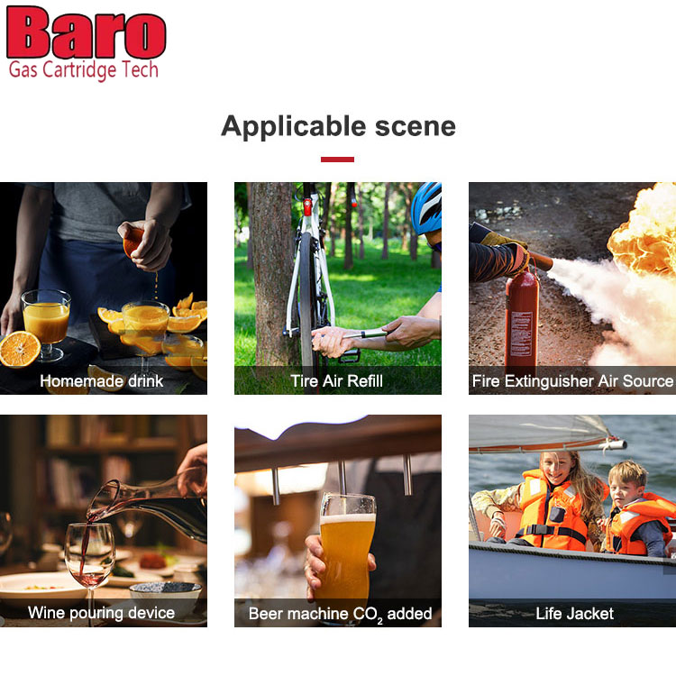 - خرطوشة / أسطوانة / علبة / خزان ثاني أكسيد الكربون عالية الجودة، شديدة التحمل، سهلة التركيب والإزالة.